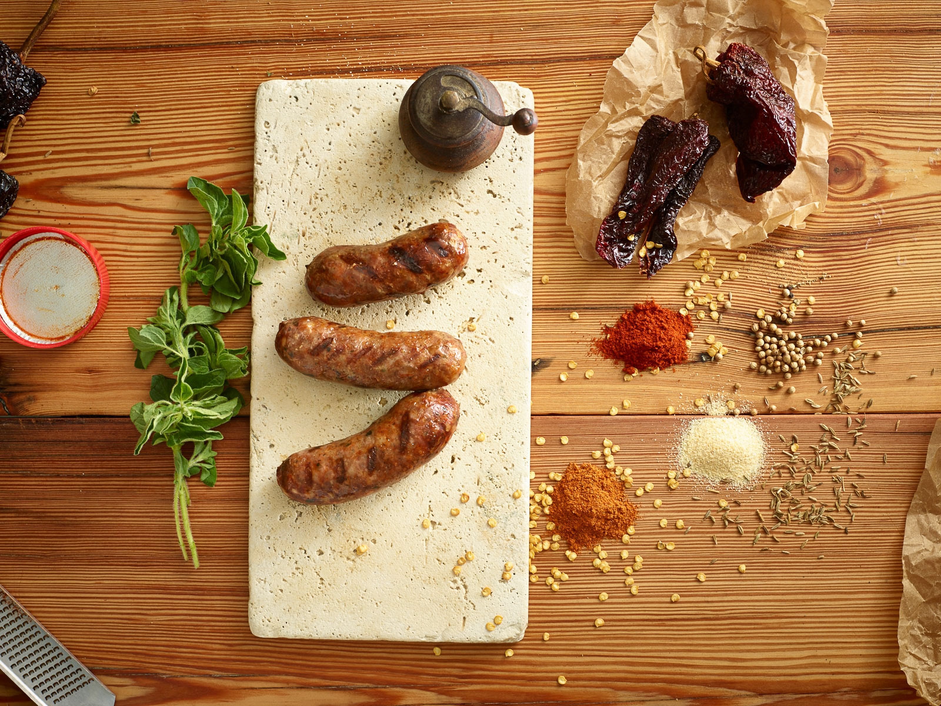 A classic North-African and Spanish sausage made from lamb. Lots of roasted red pepper and fresh oregano.